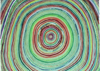עיגולים בחול, צבעי מים על נייר בעבודת יד, 50x50 ס"מ